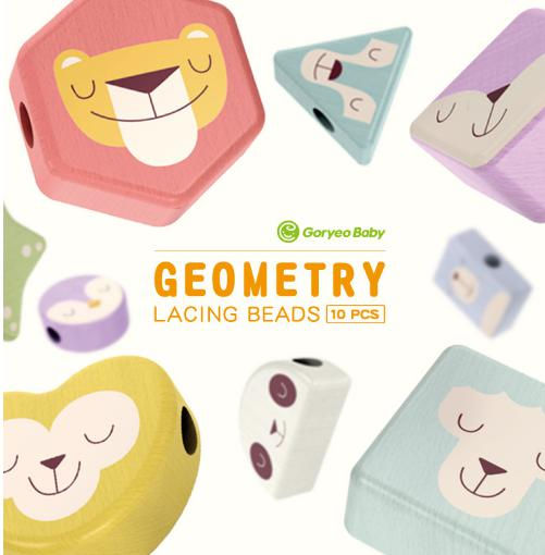韓國 GoryeoBaby 幼兒早教櫸木幾何動物穿繩積木